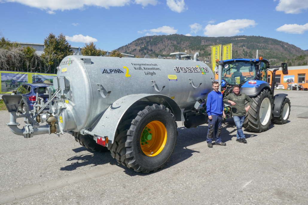 Effiziente Gülleausbringung ist heute wichtiger denn je. Umso mehr freut es uns, der Fassgemeinschaft Krall, Krassnitzer und Leitgeb ein neues Joskin Güllefass Alpina 2 übergeben zu dürfen. Mit dieser leistungsstarken Kombination wird die Ausbringung von Wirtschaftsdünger effizient, schlagkräftig und praxisgerecht umgesetzt.